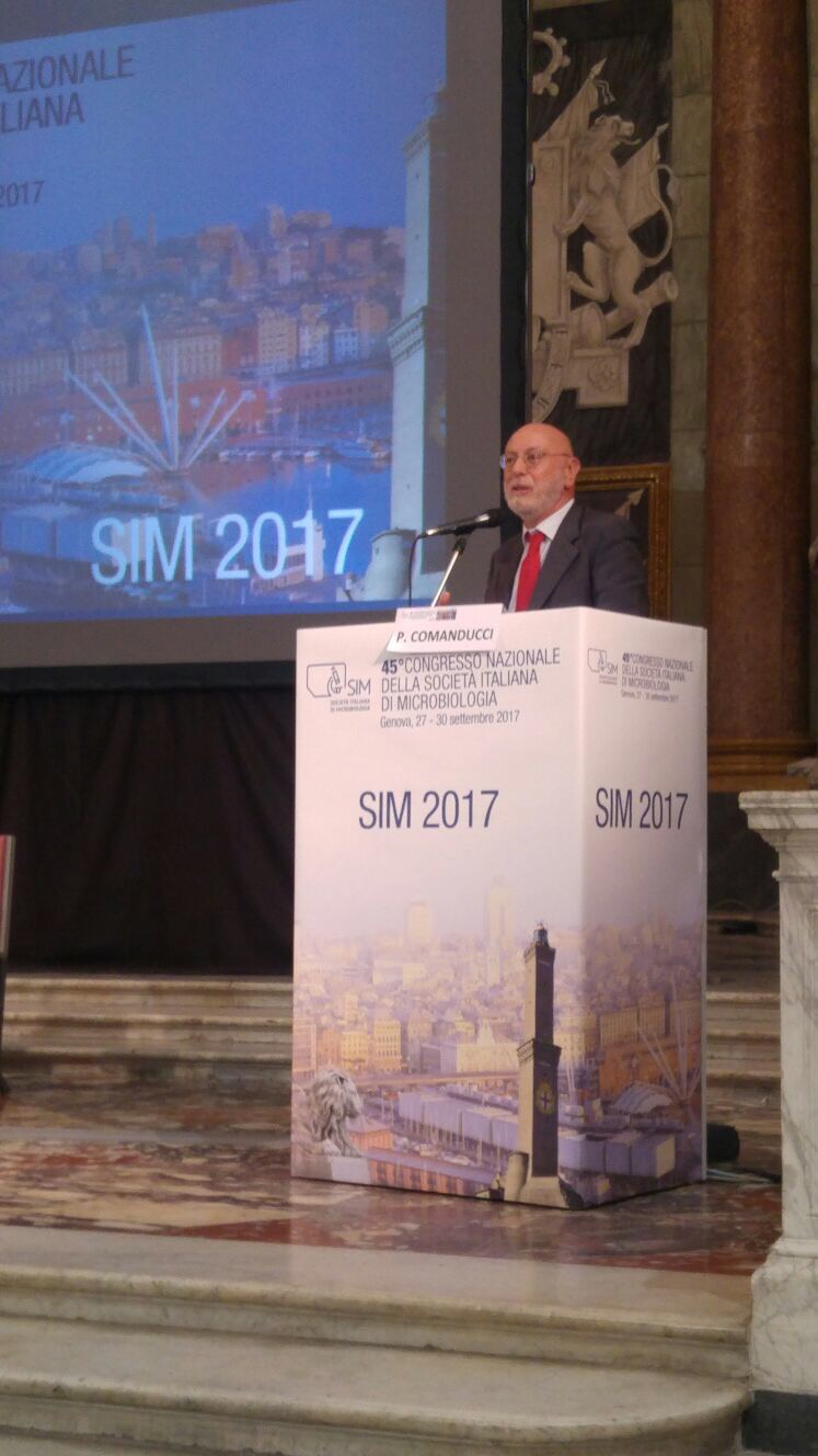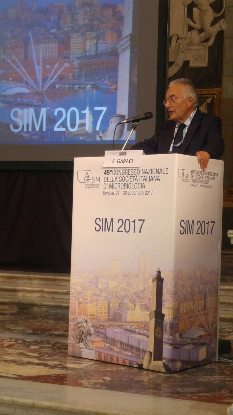 Il primo intervento, è stato quello del Prof. Enrico Garaci (Presidente Onorario SIM, Roma), che ha affermato “un’aula piena di giovani ci dà l’idea del progresso in atto […] di nuovi confini verso i quali si apre la microbiologia”. Il filo conduttore degli interventi che si sono susseguiti, stimolato anche dalle parole di apertura del giornalista Barberi, si è sviluppato prinicipalmente su due argomenti. Per primo, il ruolo centrale che ha il microbiologo quando si parla di microrganismi, siano essi in ambito clinico o di ricerca, come fortemente ribadito dal Dott. Pierangelo Clerici, Presidente dell’AMCLI e da Eugenio Debbia, professore Ordinario di Microbiologia all’Università degli Studi di Genova e componente del Comito Organizzatore delle sede ospitante, insiema alla Prof. Carla Pruzzo e la Prof.ssa Anna Marchese.