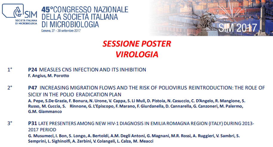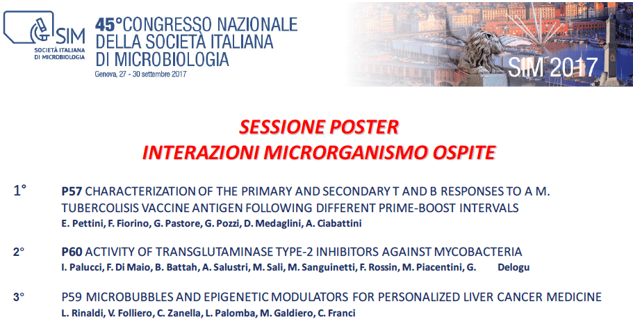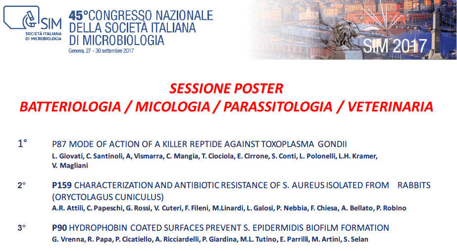 Anche quest’anno abbiamo avuto l’onore e il piacere di poter premiare i tre migliori poster nell’ambito di diverse aree di Batteriologia – Micologia – Parassitologia; Virologia; Rapporti Microrganismo/Ospite con il Premio istituito dalla Fondazione Mario Campa pari a 500 euro.  Inoltre, le Commissioni hanno selezionato altri due poster che, per l’alto valore scientifico, hanno ricevuto lo Springer Award for Best Posters consistente in un buono per libri della Springer del valore di 180 €.